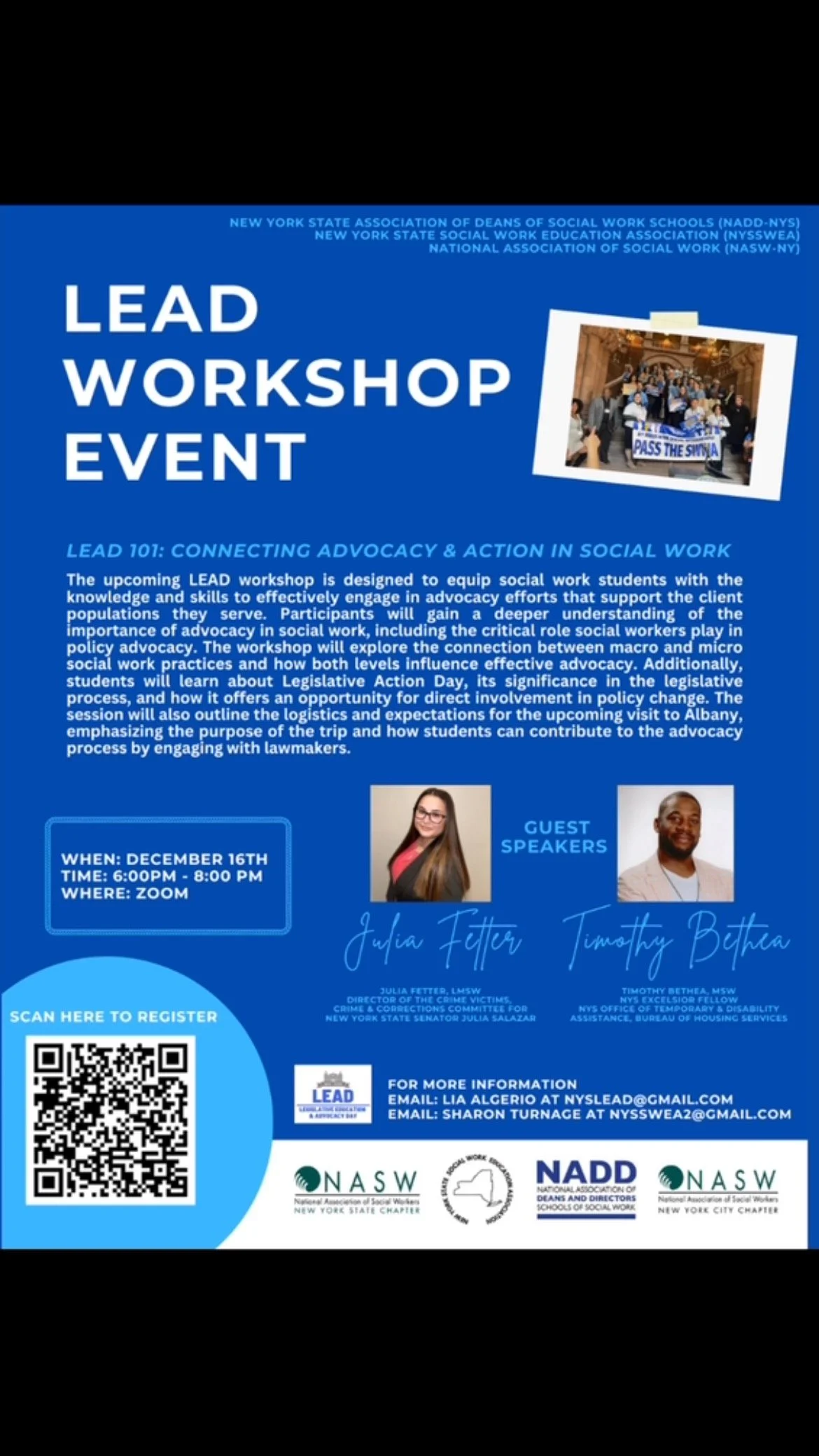 Contact NYSSWEA for more information: Email: nysswea2@gmail.com
